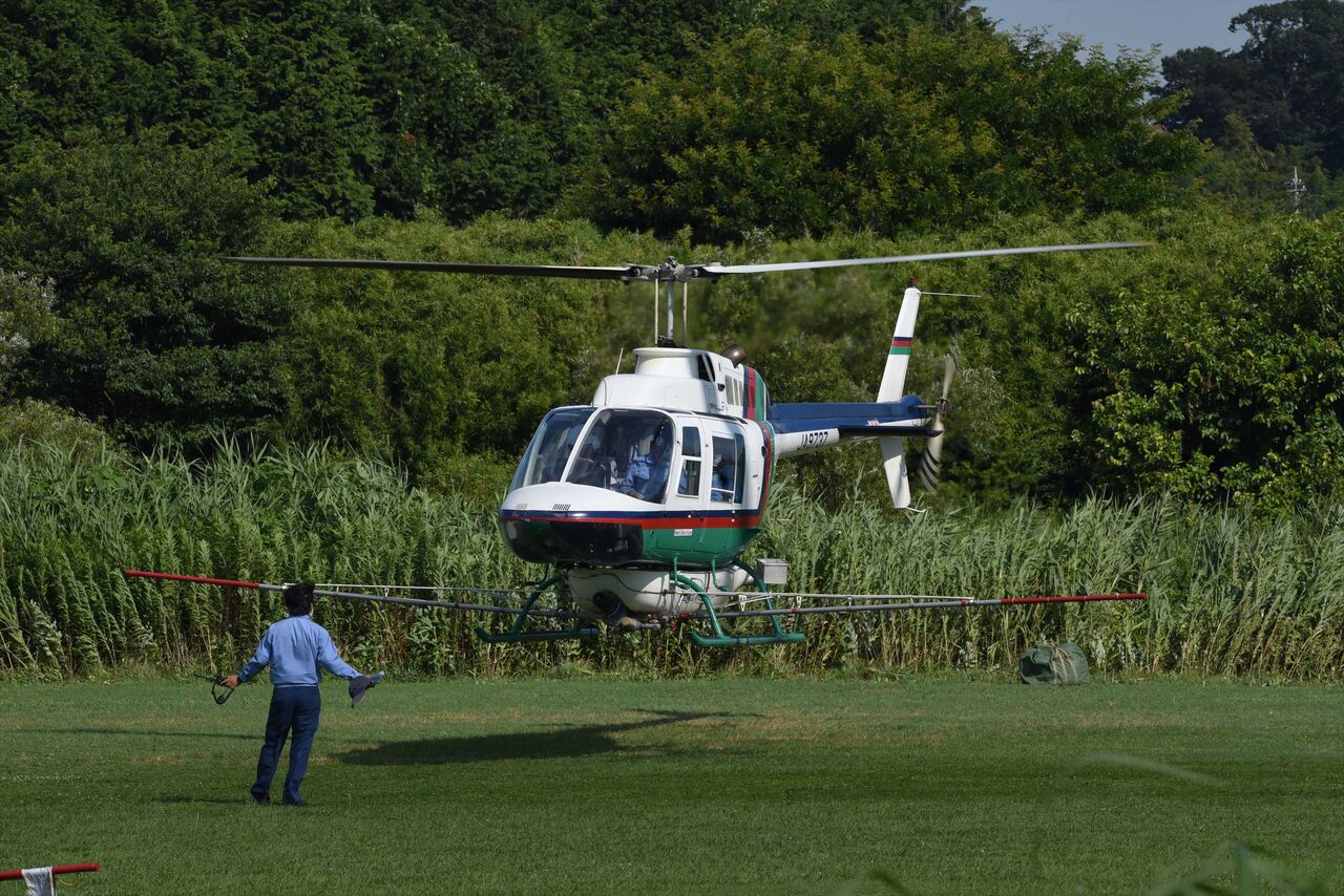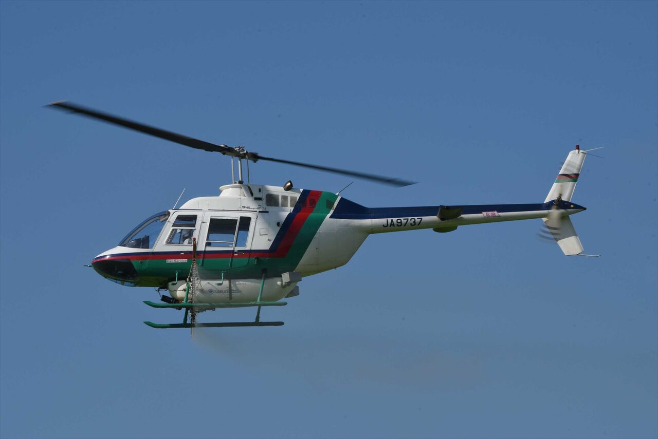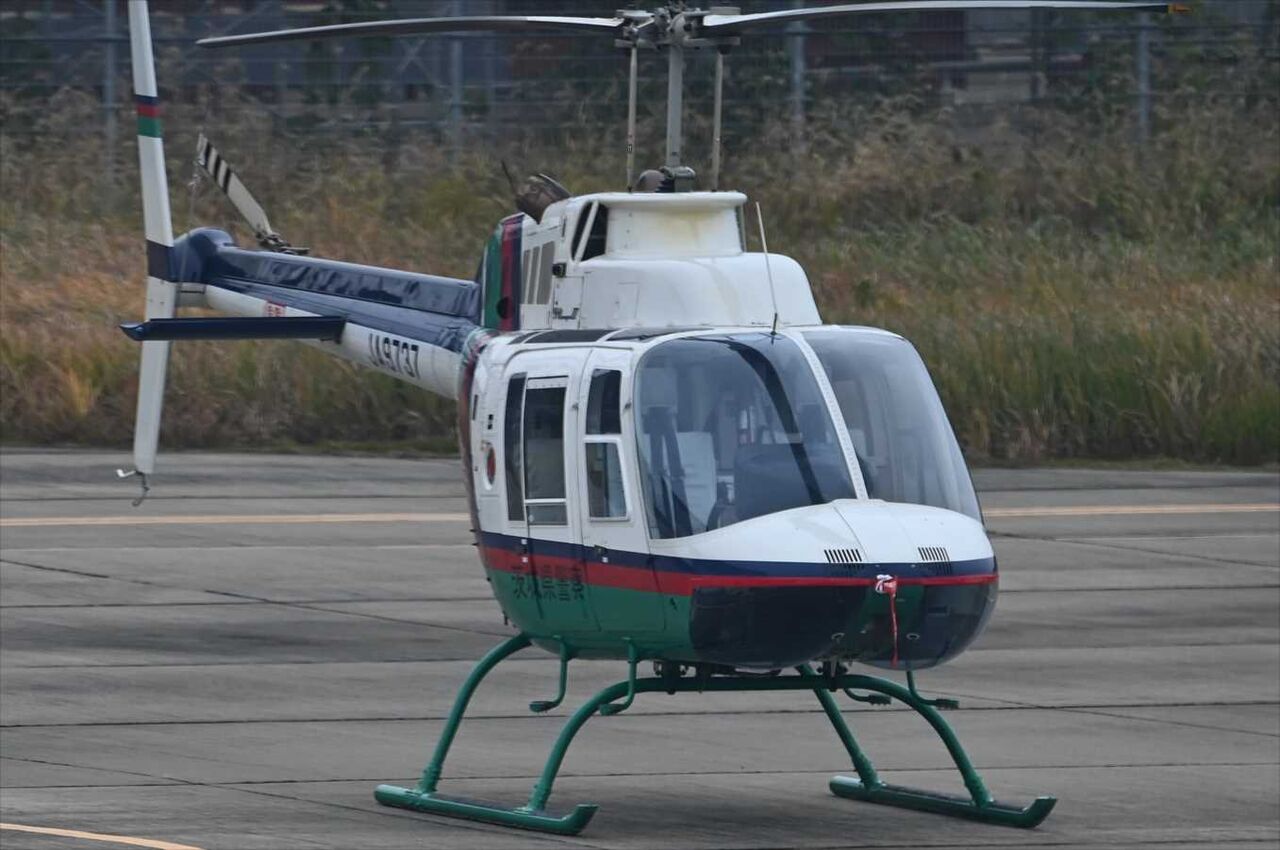 2025年11月20日 ベル206、JA9737 先日の百里、県警ヘリスポットに派手な見たことのあるベル206が置いてあるのを見た。どうやら県警のJA18RKの代替え機の様だ。後部ドアの下側に目立たない黒字で茨城県警と描いてある。飛びそうも無いのでターミナル屋上から証拠写真を。 このヘリサービスの機体は2022年7月、筑波西で水田の農薬散布をしていた。