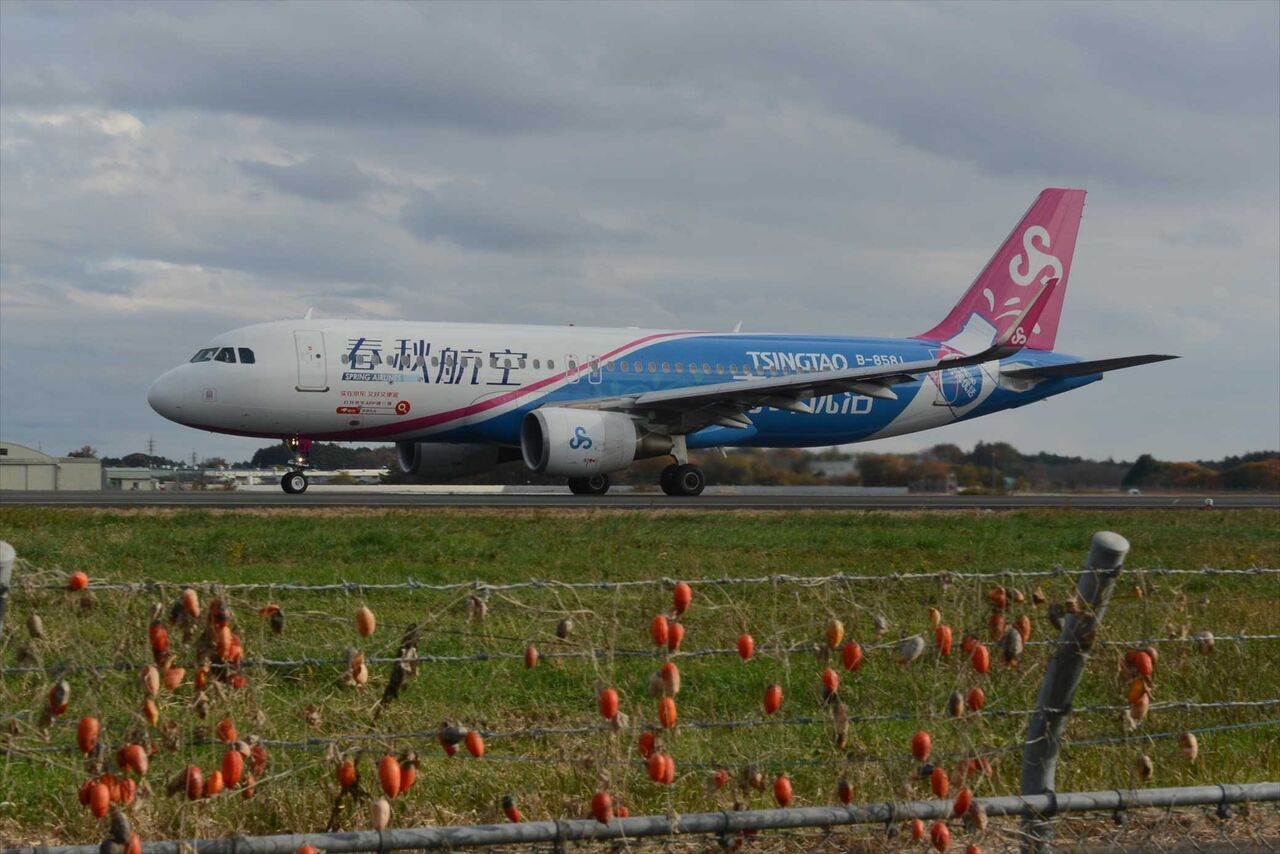 2025年11月21日 春秋航空、Bー8581、青島麦酒 昨日、FR24を見ていたら、百里へ色付き春秋航空のA320が向かっているのを発見。前回は気が付くのが遅れ逃がしていたので、曇り空だったが急遽出撃した。今回は1時間ほど遅れたので余裕で間に合った。 この後県警北側へ。 更に空港駐車場へ寄って後部胴体のアップを。動き出したので慌ててポイントを移動。 上りはどこで撮ろうかと迷ったが、季節限定のカラスウリポイントで。機首下に見えるのは救難60周年のU125。