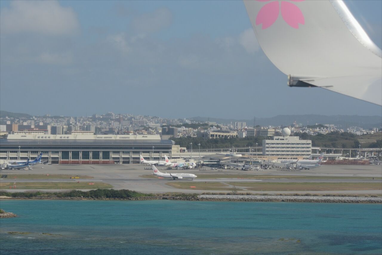 2023年02月19日 百里から那覇へその2 離陸してしばらくすると雲の上へ、もちろん晴天。 沖縄本島の北端、辺戸岬が見えてくる頃には雲が切れて予報通りに下が見えて来た。本部半島の八重岳に南風が当たり風下側に雲が発生している。 瀬底島。 南風で18Rにアプローチ、左手には残波岬。 那覇新港沖合に小型船が集まっていたがダイビングでもしていたのかな。 那覇市内。 国内線ターミナル、ランウエイ18Lの出発機はよーいドン。 翼の陰から現れたのはアーミング中の3機の天狗。この後タッチダウン。 「その他」カテゴリの最新記事 < 前の記事次の記事 > コメント コメントフォーム 名前 コメント 記事の評価 リセット リセット 顔 星 情報を記憶 コメントを投稿する