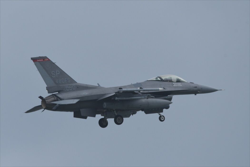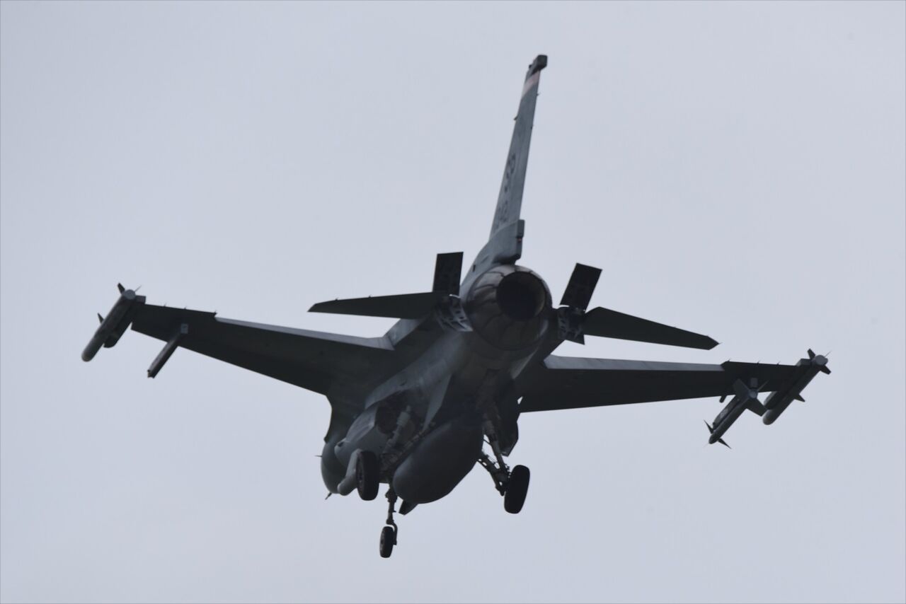 今回の目的地は嘉手納、年末からSPのF-16が来ているというので航空券も安く手に入ったので出かけて来た。残念ながら天気予報は良い方に転ばす、北風の強い曇り空。雲低も低く、05Lへの直線進入だった。雨も降りそうなので風除けの出来そうな海岸沿いの某所でスタンバイ。離陸は見えず音だけが聞こえたが続々と上がって行った。1時間ほどするとILS でアプローチして来た。