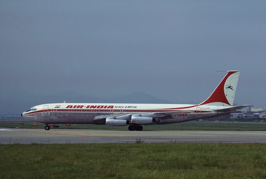 印度航空のB707,他の会社はほとんどPW社のターボファンエンジンになってしまったが、此処はRRのターボジェットにハッシュキットを着けて運用していた。