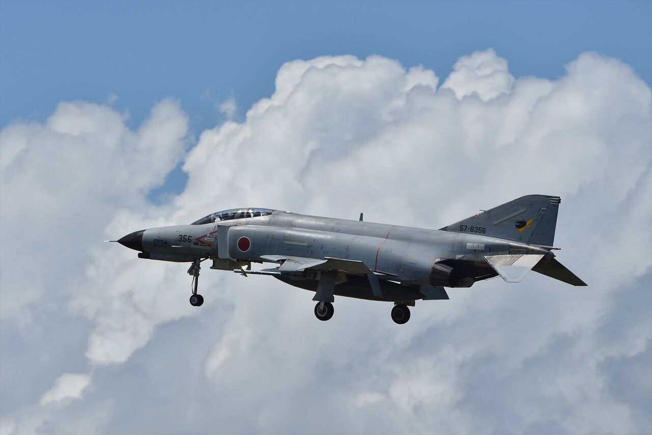2020年08月29日 昨日の百里8月28日 朝方出かけようとしたら友人からカエルの青と黄色が上がったよとの連絡が来た。あれ今週は遅番のはずだがと思いながらもスクランブル発進。高速で飛ばしても1時間かかるので着陸は無理かなと思いながら走って空港インターを降りようとしたら正面をファントムが横切ってガッカリ、やはり1時間以内に戻ってきてしまった。 それではとセカンドを待ったが、出ていた5機のうち青と黄色を除いた3機が上がってきてまたもやガッカリ。まあ捻ってくれただけでもましかな。 降りは雲が良い感じだったが、なかなかうまく入ってくれない。