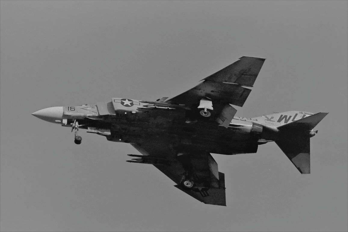 しばらくすると3機のファントムがオーバーヘッドアプローチ、降りて来たのはNG(VFー96、USS AMERICA)のF-4Jだった。