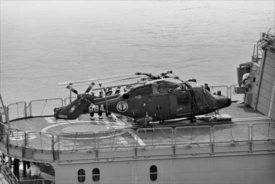 2025年04月28日 晴海埠頭、1991年2月 神戸にジャンヌダルクが入港して10年後、晴海埠頭には仏海軍のフリゲート、JEAN BART が入港した。艦載ヘリを期待して行って見ると幸いにも甲板にはリンクスが出ていた。10年前は白と灰色の塗り分けだったが、濃い灰色のロービジ塗装になっていた。