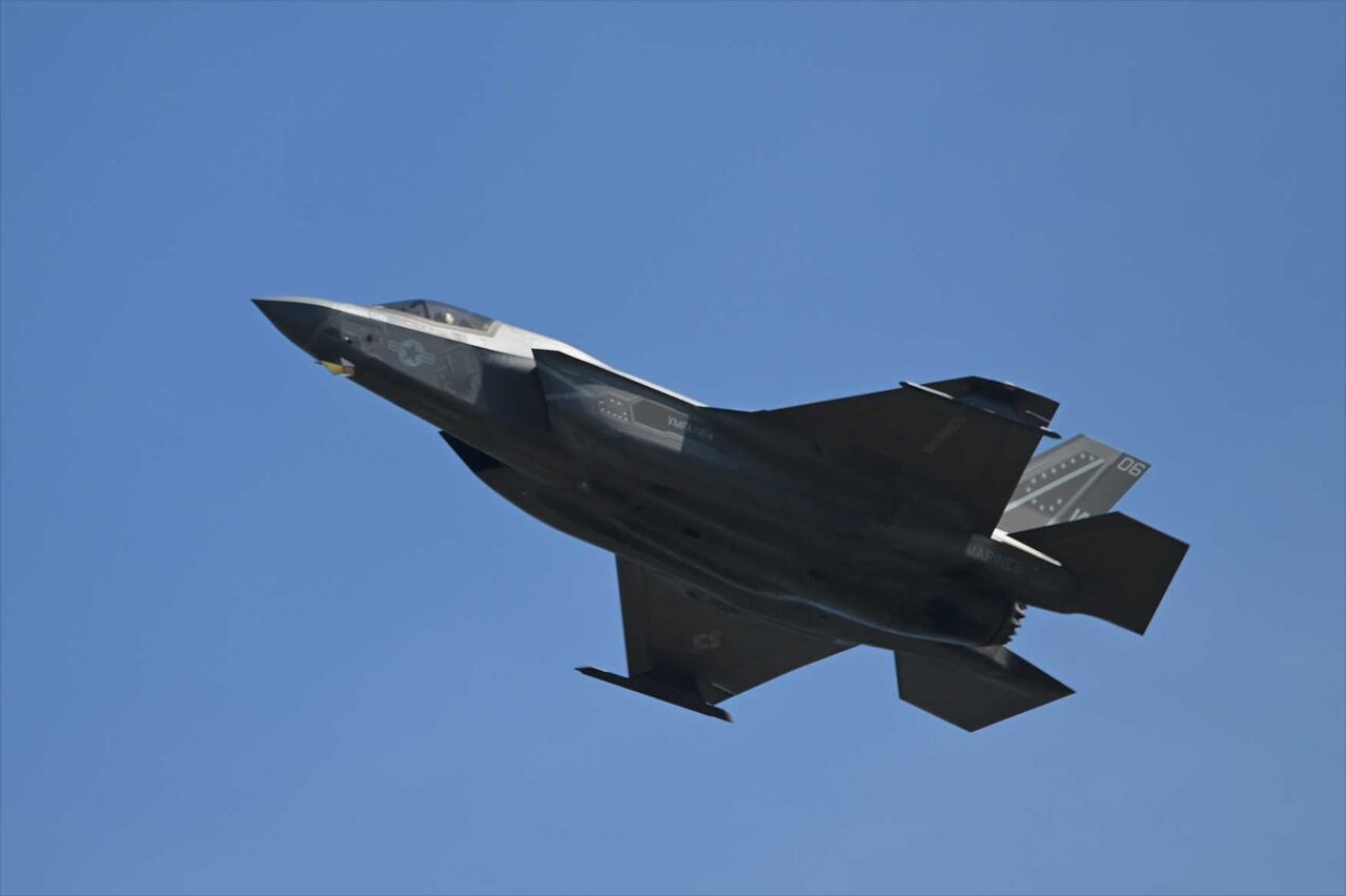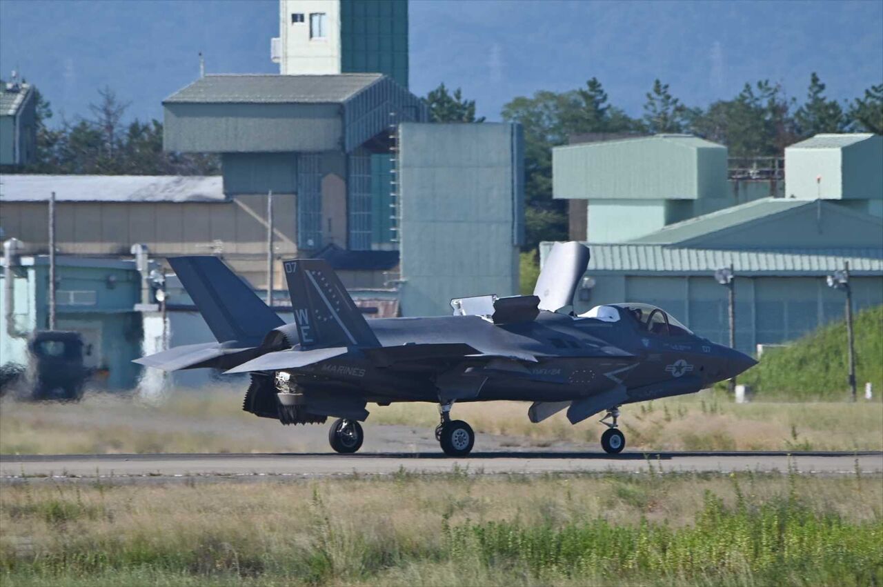 定刻の8時5分に到着、飛行機を降りてPBBを歩いているとゴーッと激しい爆音が聞こえた。何事かと外を見るとFー35B着陸する姿がチラッと見えた。急いで良く見える場所まで移動してカメラを引っ張り出したら何とか3機目を撮影出来た。