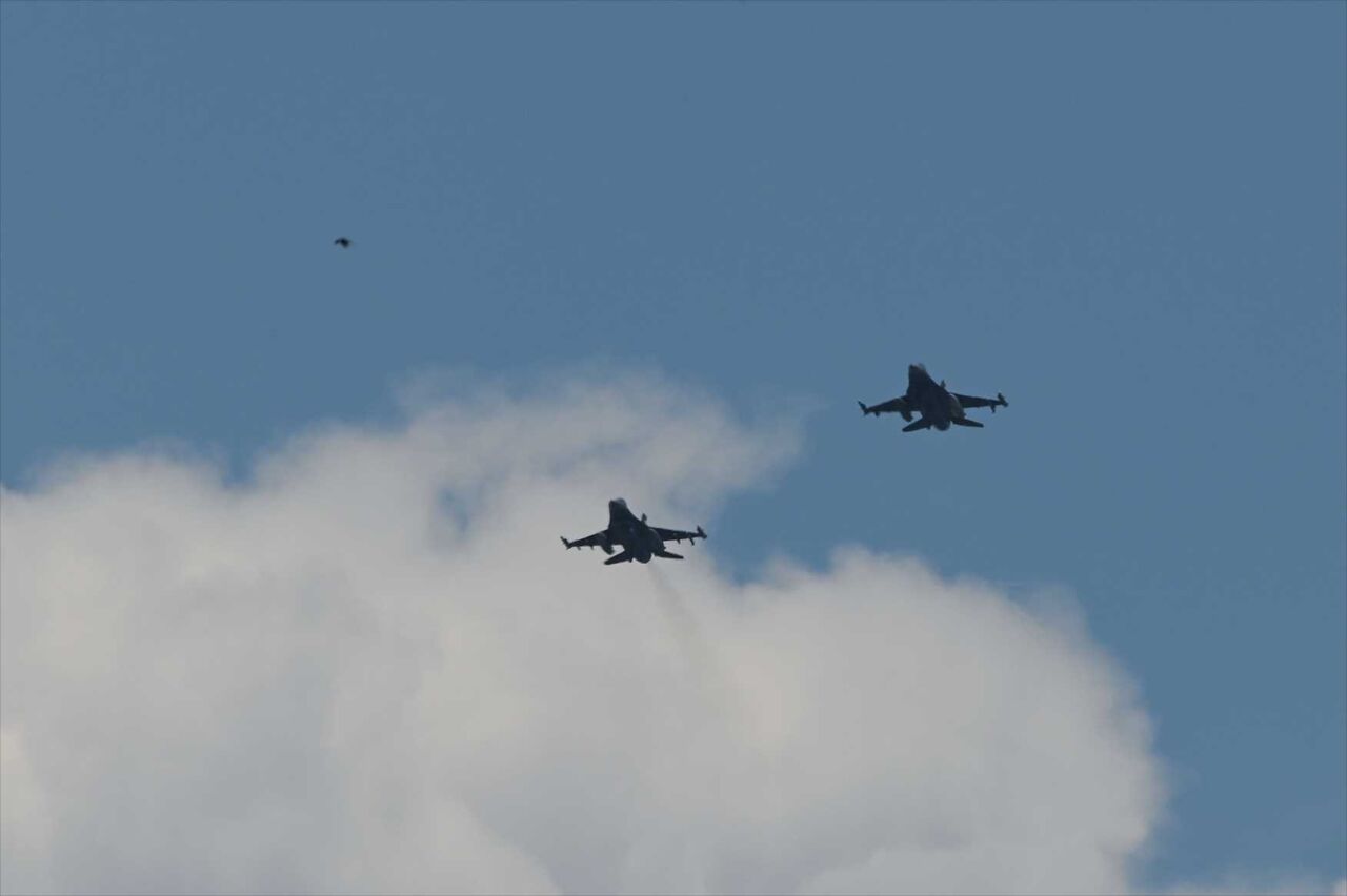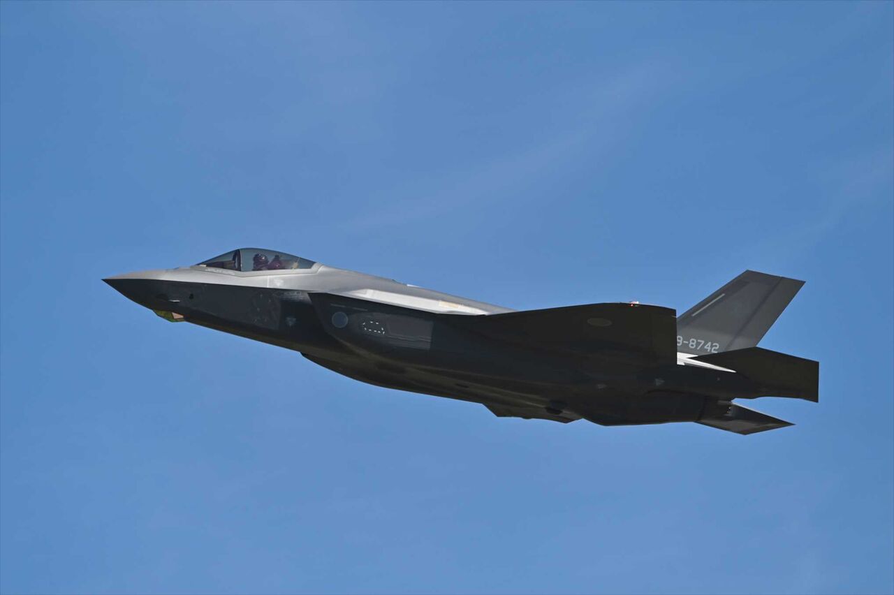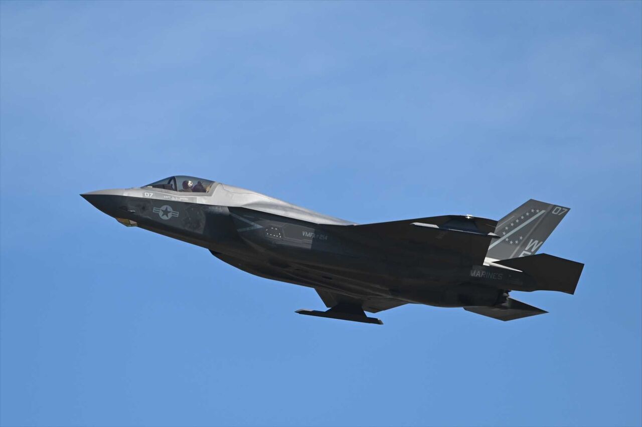 地元のIさんが出迎えに来てくれていたので便乗して着陸ポジションへ向かったが、先ほど降りた黒ヒツジのFー35Bが上がりそうになったので、離陸ポジションへ移動。ほどなくして先程降りた3機が離陸して来た。2番機はかなり低めで良し良し。ところが3機目は良い所でお腹バックリでガックリ。