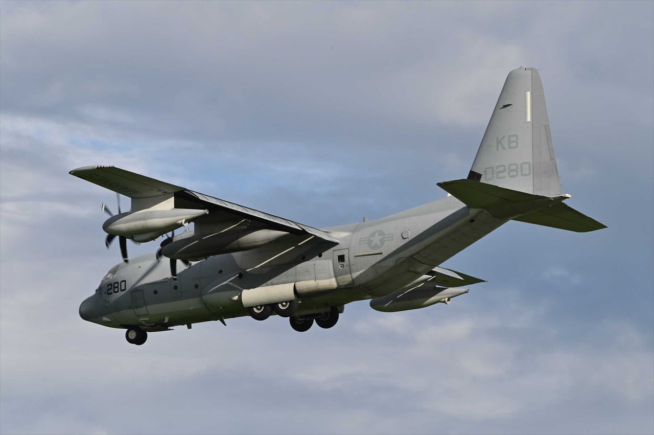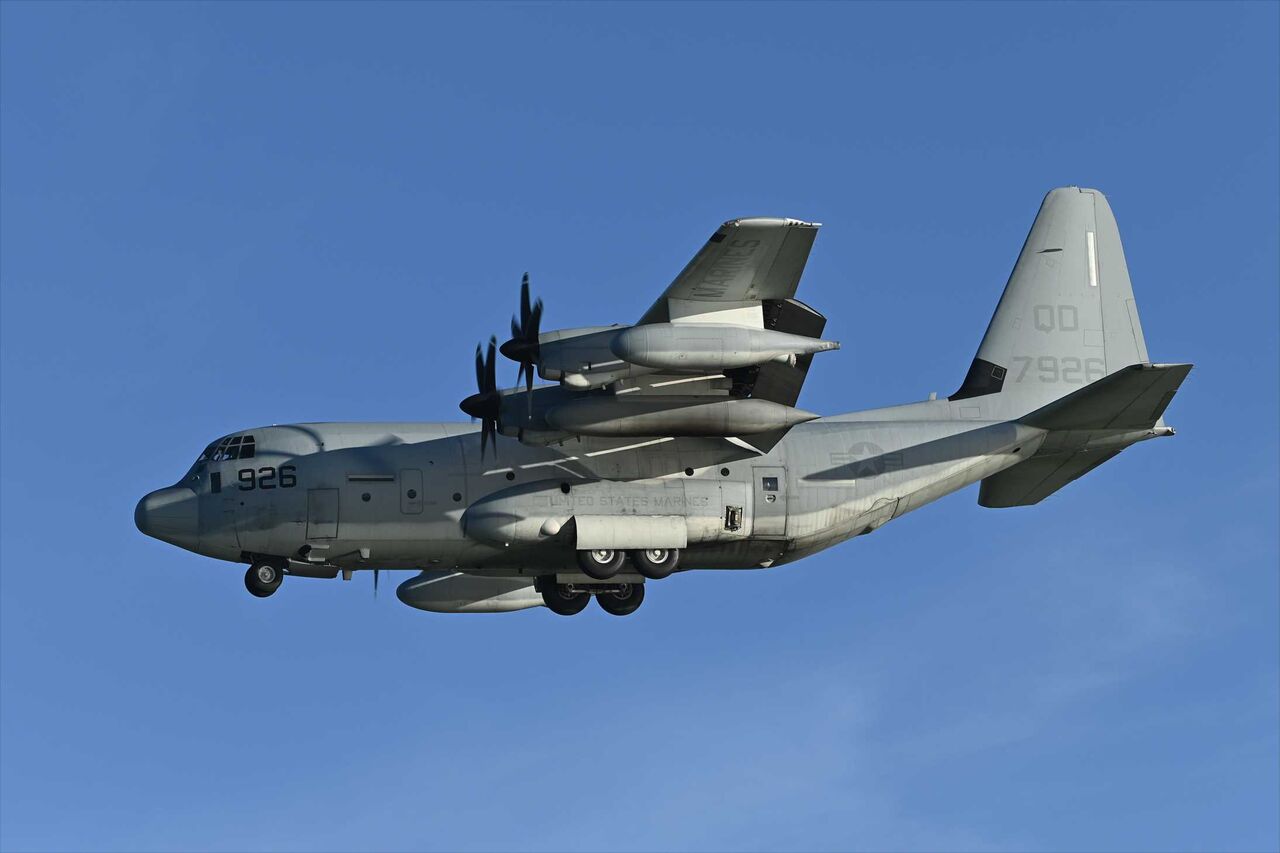 2025年09月21日 その他のCー130、嘉手納 MCー130以外にもCー130は動きが有った。お馴染み横田のYJ。 こちらもお馴染みの岩国のおすもーさん。 こちらは岩国のおすもーさんと思っていたが、よく見るとテイルレターは”KB”だった。調べてみたらハワイのカネオヘ基地のVMGRー153,初見。 こちらは昨日紹介した黒塗りのMCー130、FR24によるとシリアルは11422との事。