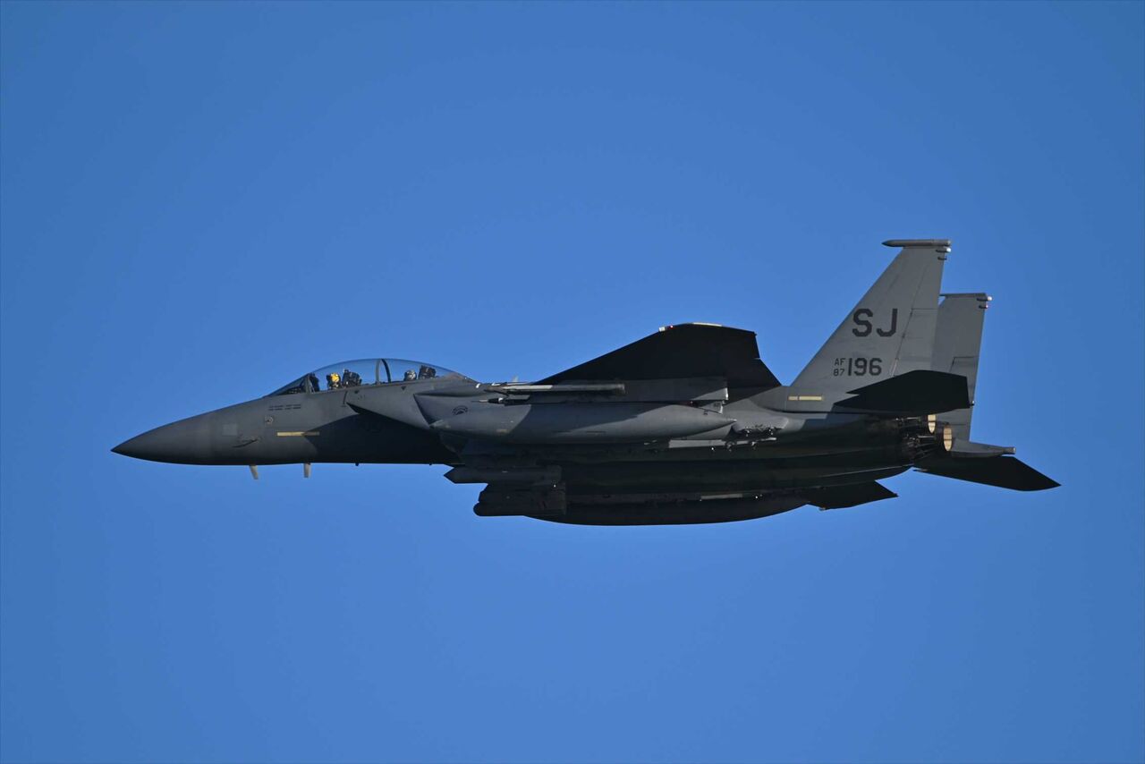 9月中旬、本国からのローテーションで派遣されていた、SJのFー15Eも帰国間近かだったので嘉手納へ行きなんとか撮影できた。