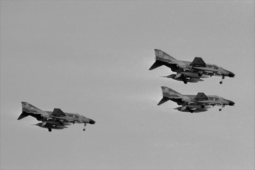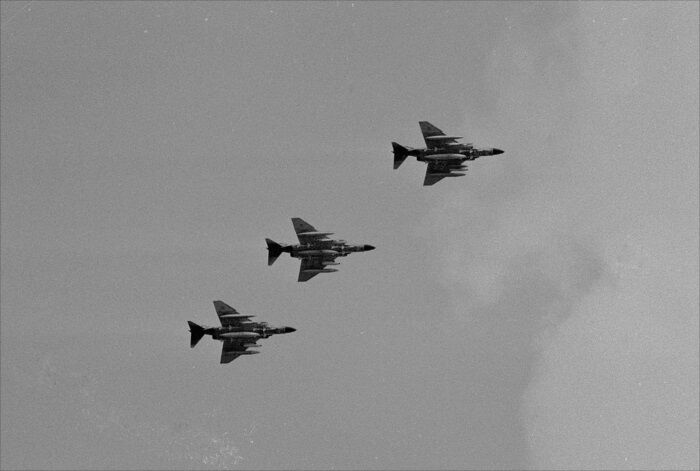 2025年01月07日 横田でのFー4 スキャンして眠っていた画像から、1969年9月の横田基地にはプエブロ号事件対処の為に本国から韓国に派遣されていたFー4D(ZF)、4531TFW560TFSが飛来した。 最初は箱根ヶ崎方面からランウエイ18に3機編隊のままローアプローチ、その後編隊を組みなおしてエシュロンでオーバーヘッドブレーク、着陸した。なお各機には三本タンクとスパローの実弾4発をフル装備、日本海上空をCAPしていて横田へ飛来したと思われる。 「昔の写真、横田」カテゴリの最新記事 < 前の記事次の記事 > コメント コメントフォーム 名前 コメント 記事の評価 リセット リセット 顔 星 情報を記憶 コメントを投稿する