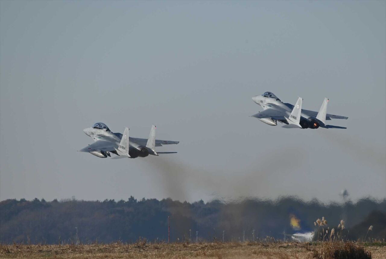 2025年12月12日 ドラゴンのFー15 同じ中空のよしみで百里へのFー15は小松が担当している。昨年は両飛行隊の色付きが参加というサプライズが有り、今年もと期待したがハズレだった。今年は単座と複座の2機が飛来、デモフライトはぶっつけ本番といった感じで高い遠いで終わってしまった。 離陸はフォーメイション、丁度重なってしまった。 「百里」カテゴリの最新記事 < 前の記事次の記事 > コメント コメントフォーム 名前 コメント 記事の評価 リセット リセット 顔 星 情報を記憶 コメントを投稿する