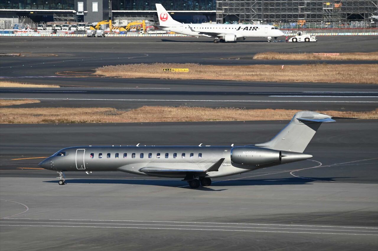 こちらはBDー700(N1966H)、ボンバルディアは銀メタリックが好きなようだ。ロービジ塗装を意識しているのかレジも見えにくい。