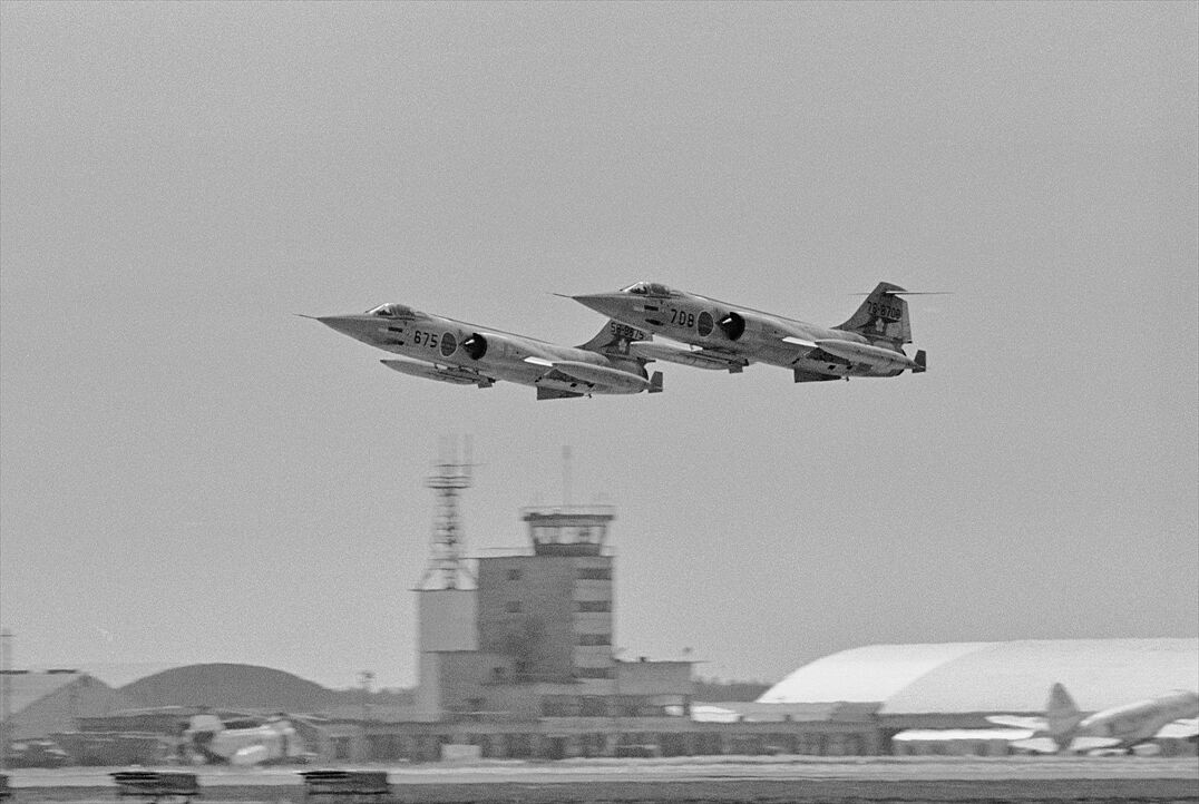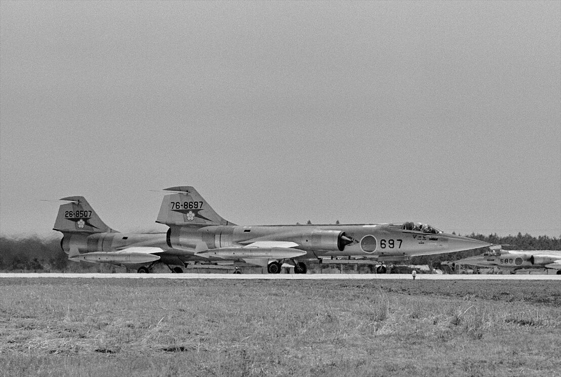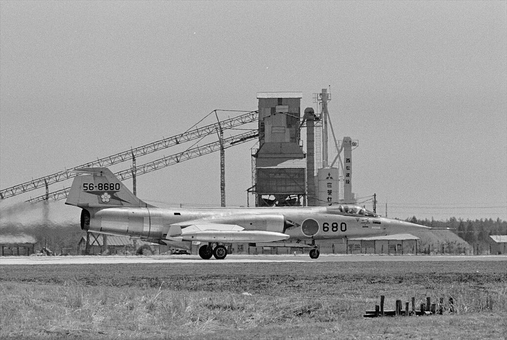 こちらはアラート待機のマルヨンがエンジンランナップを終えてハンガーに戻るところ、この頃のアラートハンガーは現在と違って03エンドの反対、南西端にあった。新アラートハンガーが出来た後は県警ヘリの格納庫に使用されたが空港の開設に伴い解体された。
