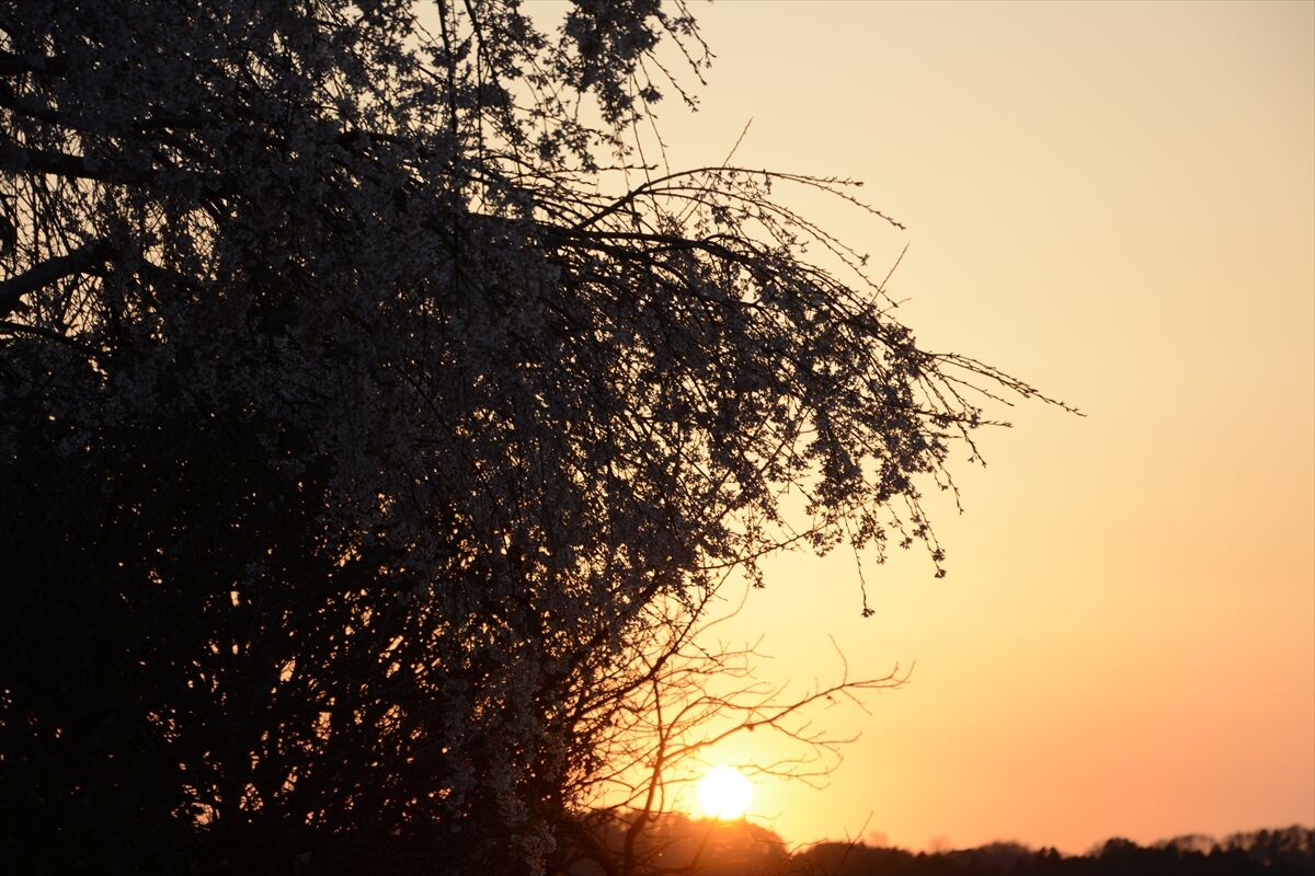 最後に近所の枝垂れ桜と夕日でおしまい。