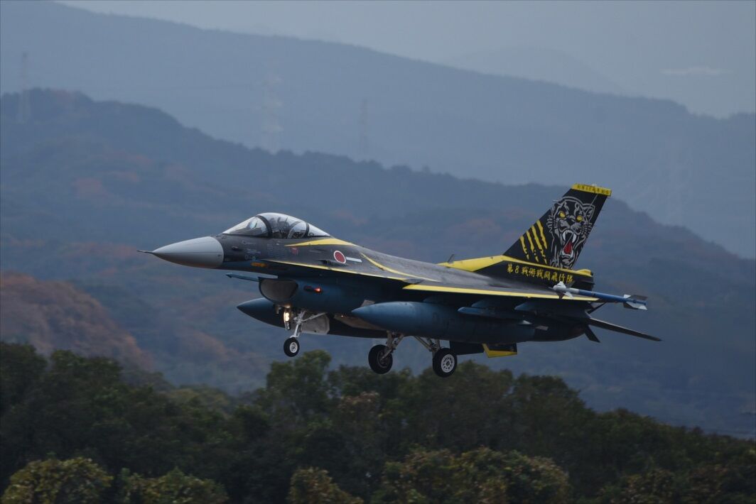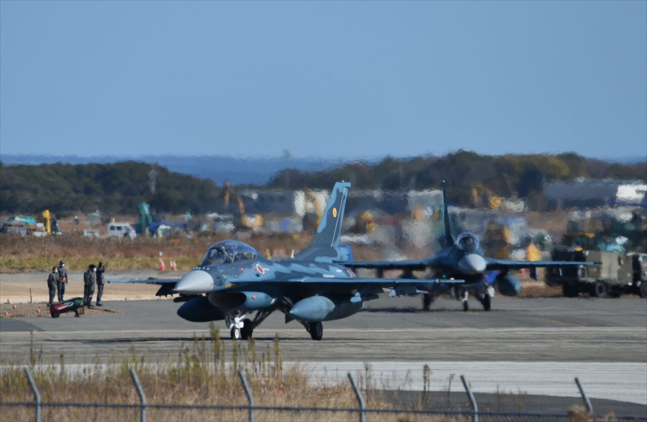 2021年12月12日 築城、07エンド 築城では今、滑走路工事の為旧滑走路で暫定運用している。その為西側の07エンドではかなり近い場所で着陸が撮れる。しかし工事中なので背景がうるさいのが玉に瑕。 転がりも撮れることは撮れるがちょっと遠いかな。