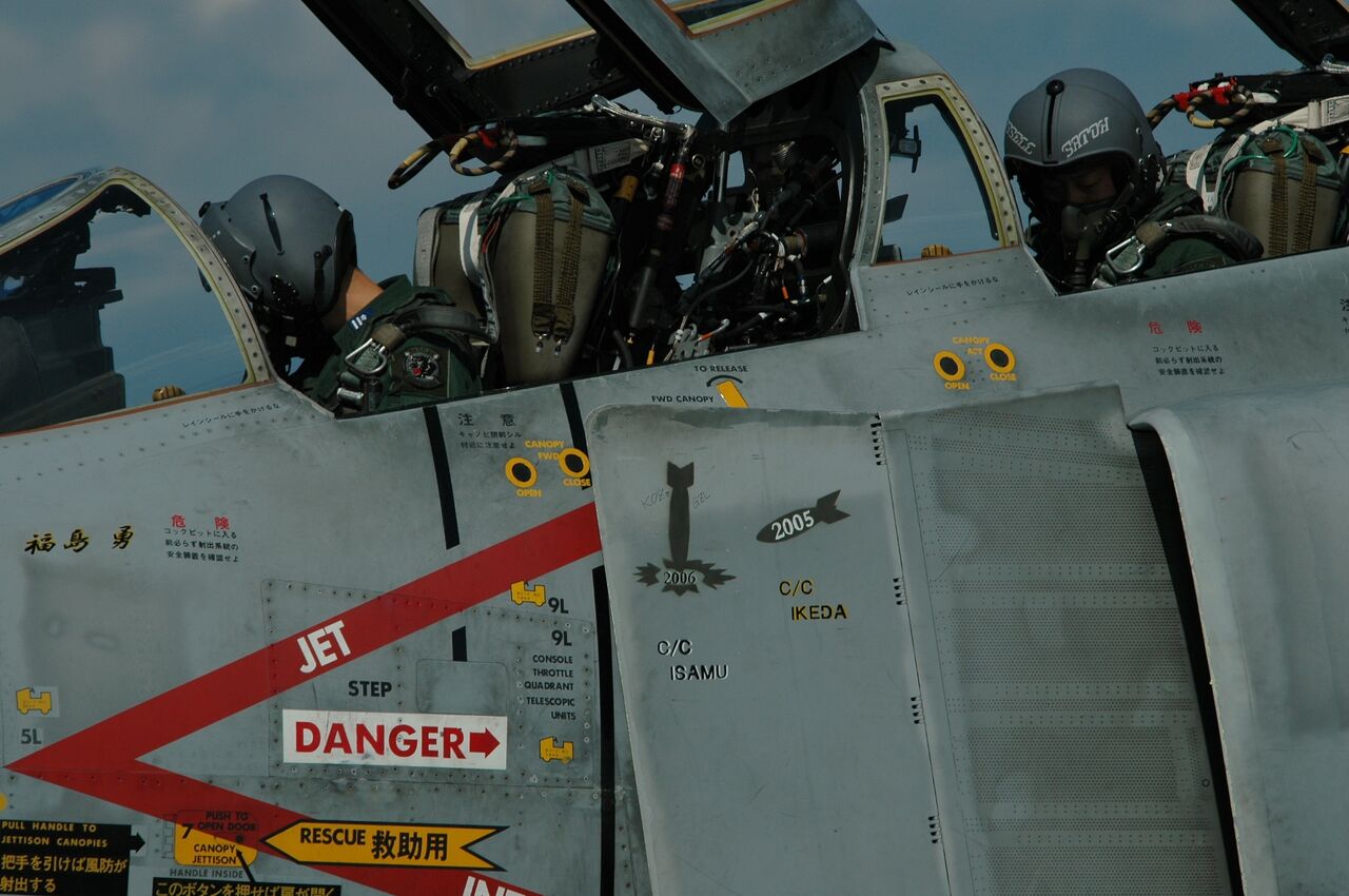 2025年04月20日 ファントム回顧録、2006年三沢 2006年9月10日は三沢航空祭、8sqのパンサーをまともに撮れたのはこの時だけだった。オープニングフライトでのリーダー機は飛行隊長だった。 インテークベーンには実弾投下した記念マークが描かれている。