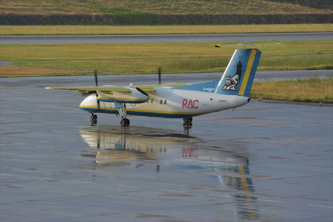2025年06月17日 DHCー8、琉球エアコミューター(RAC) DHCー8つながりで今日はRAC。RACは沖縄離島を運航していた公共施設地図航空の後を引き継いで1985年12月24日に設立された。当初はBNー2、その後DHCー6で運行されたが、1997年4月15日からはDHCー8ー100が導入された。2017年2月22日迄20年弱4機が飛んでいた。 今日は1機目のJA8935。 ここからは新石垣空港。