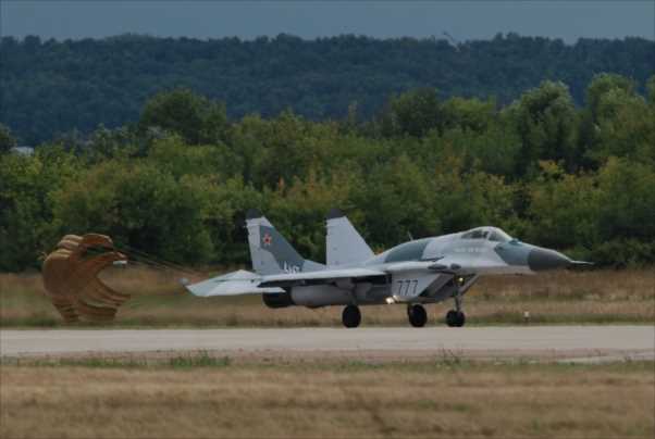 2025年07月22日 MAKAS2009、ミグ35 今日は日米共同訓練が始まるというので、勇んで百里へ出かけたが、予定通り三沢からFー16が4機降りただけ、明るい内には予定のKCー135も姿を見せず、猛暑の中冴えない結果に終わってしまった。という事で画像の編集もやる気が出ず、MAKAS2009の続きを。 ミグ29の改良型ミグ35のデモフライト。エンジンも改良されたようでスモークレスになった。