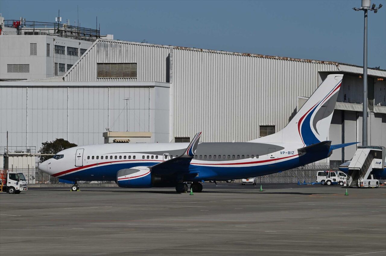 ボーイングBBJ、VP-BIZ。ACM AVIATION、税金対策でタックスヘイブンの国籍を付けている正体不明の会社だ。富裕層はせこいことをするね。