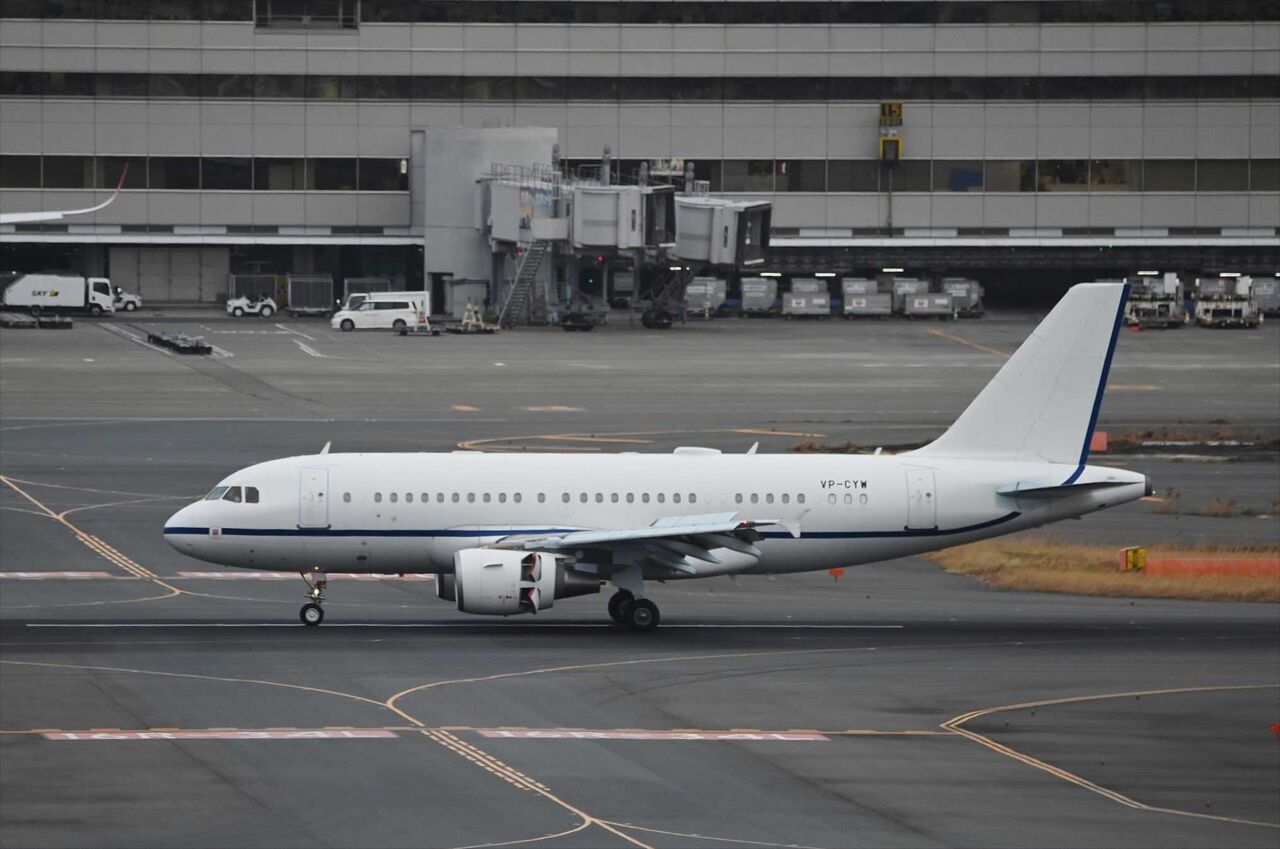 ケイマン諸島国籍のA319,VPーCYW。所有者は中国企業らしい、こちらも税金対策の様だ。胴体に青い筋が有るだけの味気ない塗装だが、ついシャッターを押してしまう。